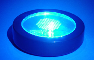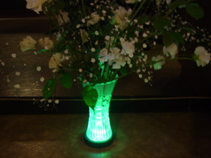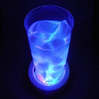 グラスなどをコースターに置くとスイッチが入り七色に光り輝きます。